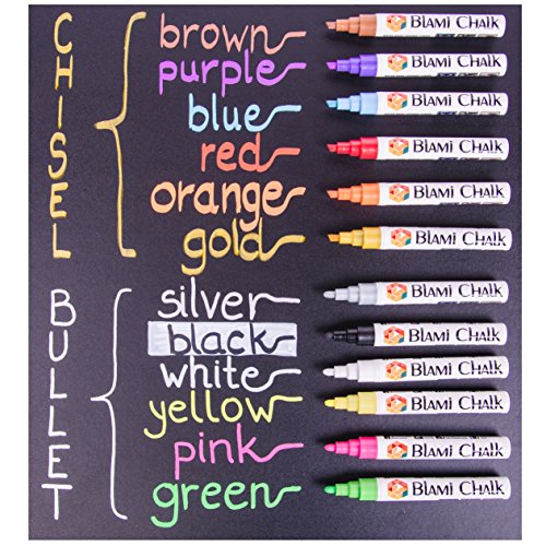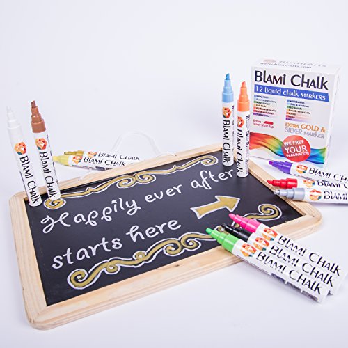 Blami Arts Liquid chalk markers offer you a bargain you can't resist. • Easy and efficient to use on wide variety of nonporous surfaces (WARNING: We still recommend a short test on a small area of the surface. Gold and silver leave permanent marks on chalkboards.)