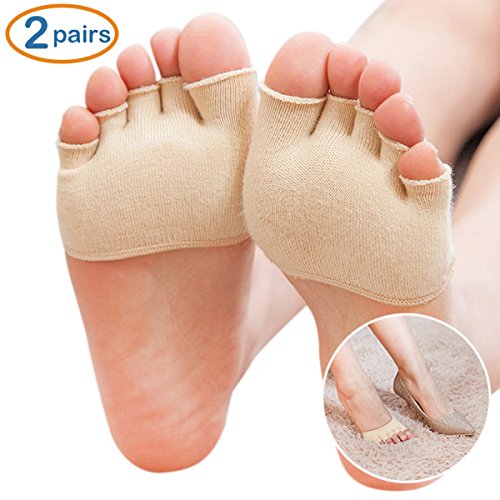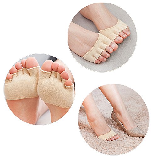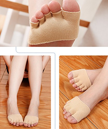 LOHOME Toe Socks, Cotton Non-Slip Women's Toe Toppers Socks Toe Separating Socks No-Show Half Socks Barre Pilates Yoga Half Palm Socks Ballet Grip Sock for Summer (2, Skin Color)