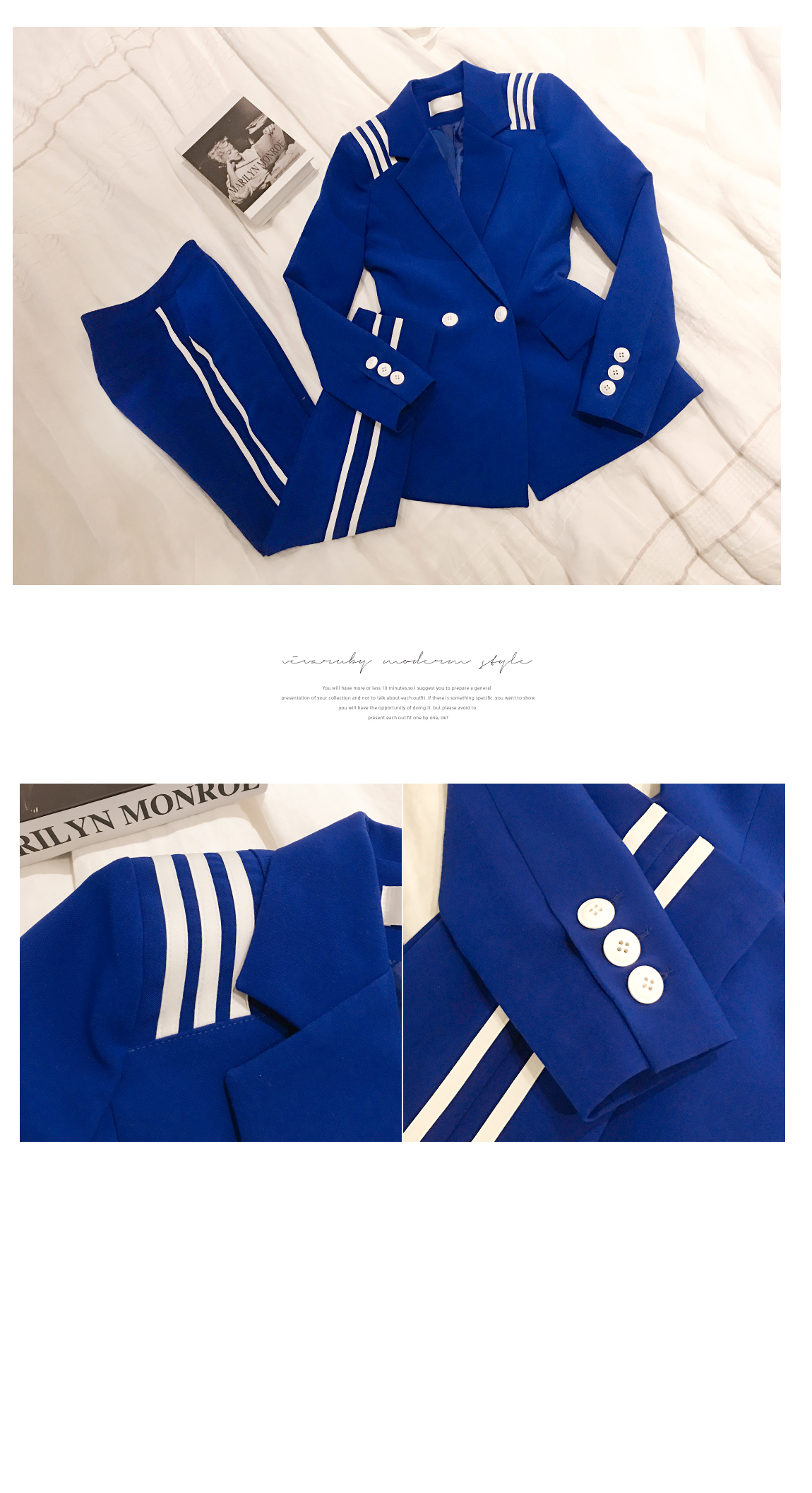 華やかなブルーカラーで目を引くジャケットを紹介しますよ
