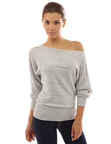 Cotton Blend Boat Neck Semi-fitted Ribbed Casual Pullover Sweater. Fabric is semi-sheer. It features on / off one shoulder and batwing long sleeves. Model in pictures is 5 feet 8 inches (173cm) tall wearing size S