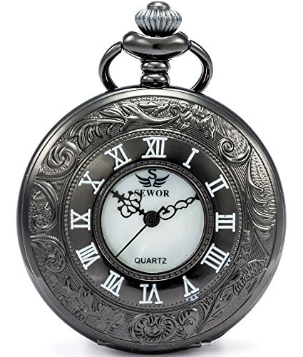 Sewor중공 고전 조각 석영 쿼츠 회중 시계와 2개의 타입의 체인에(레더 메탈)