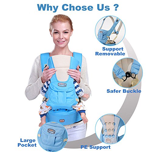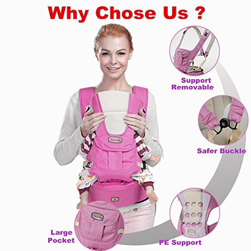 -. Feature : ★ REAL COMFORT FOR YOUR BABY-- Instead of suspension, our baby carrier comes with a hip seat. That is to say, your baby is sitting on the seat when you use our baby carrier. No more pain caused by long time suspension and no more hurt resulted by the coarse materials. Our baby carrier can provide your babies with the most comfortable experiences. / ★ DESIGNED FOR YOUR GROWING BABY-- No more worry about the inconvenience caused by your growing babies. Our baby carrier is designed for 0-36 months babies and the removable parts allow you to adjust the baby carrier to your babies. What's more, our baby carrier can bear the weight of 0-50lb. Your baby will be safe and sound in our baby carrier. / ★ LARGE CAPACITY POCKET FOR NURSING BOTTLES AND DIAPERS-- Designed with a large pouch, our baby carrier can give you all your needs and try its best to make you feel satisfied. You can put the milk bottles and diapers into the baby carrier pouch and it will help you a lot when facing some emergency situations. / ★ ERGONOMIC CONCERDED AND BEAUTIFUL COLORS-- As we all know, the infants are super vulnerable and the their bones are not as strong as our adults. In order to give the new infants the strongest support and comfort, our baby carrier comes with a PE support which can protect your babies' neck bones from being hurt. / ★ 100%MONEY BACK GUARANTEE AND FREE REPLACEMENT SERVICE-- We promise that we will provide our customers with the premium quality products. And if you have any problem with our products, you can contact with us and we will give you a satisfying solution. We provide 100% money back guarantee and free replacement service. Just buy it without worry.