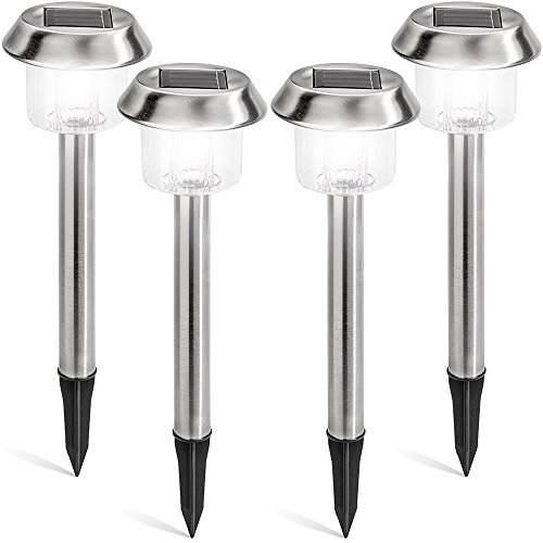 SOLVAO Solar Garden Path Lights (4 Pack) - Landscape Pathway Lighting w/ Waterproof Stainless Steel Build for Outdoor Walkways - Includes Auto On/Off Feature & Ground Stakes