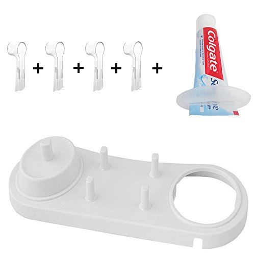 FOURCHEN Toothbrush Heads Holder set Include 4 pcs Oral-B Electric Heads Cover - Head Stand for Oral-B Electric /philips heads holder +1 Tool for squeeze toothpaste