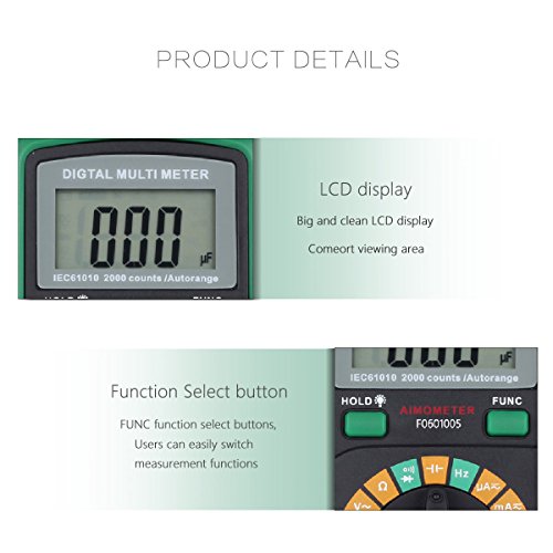 Digital Multimeter Auto-Ranging Capacitance 2000uF Multi Meter DC/AC Voltage Current Resistance Frequency Diode Continuity Tester Backlight