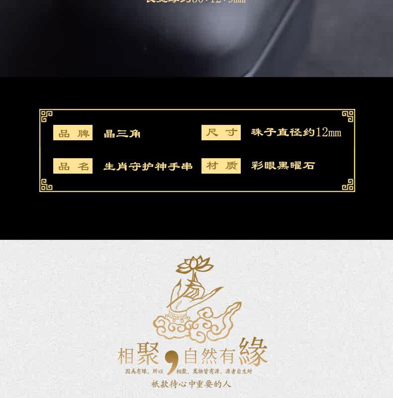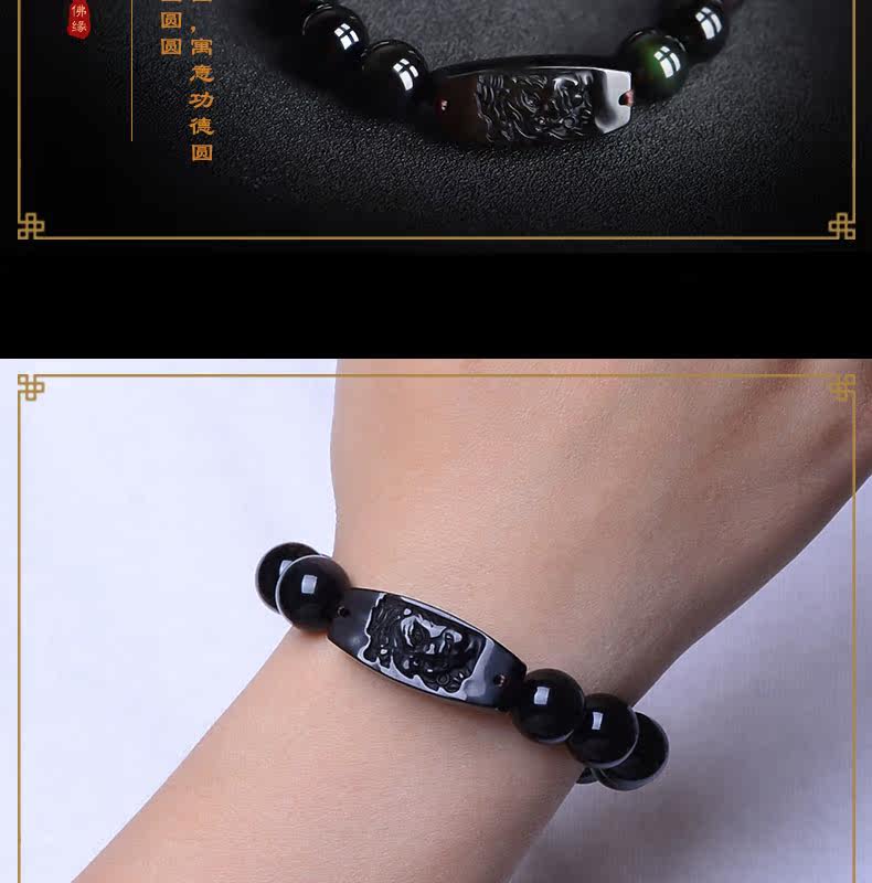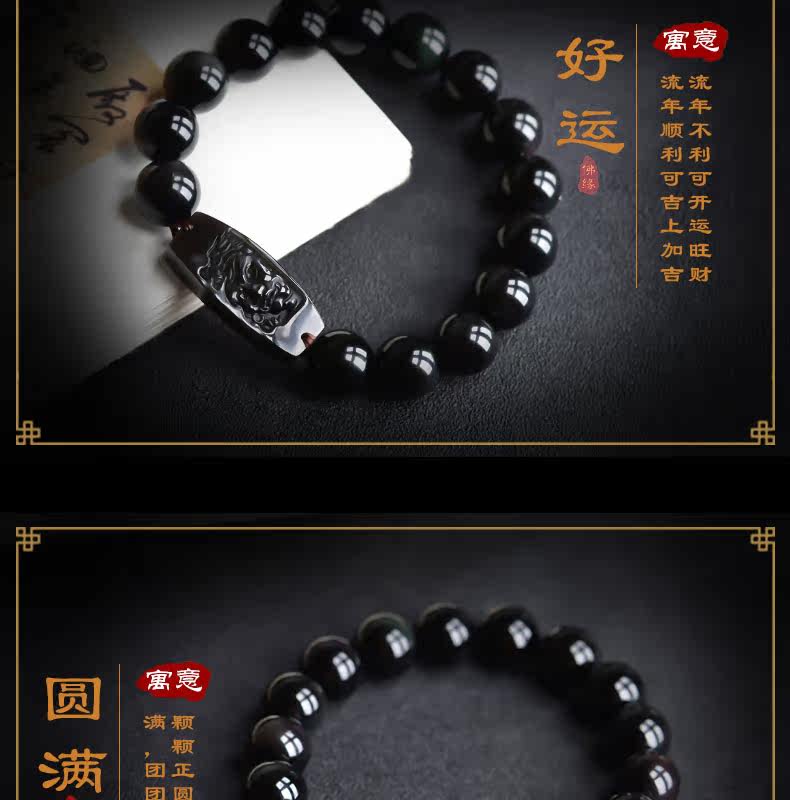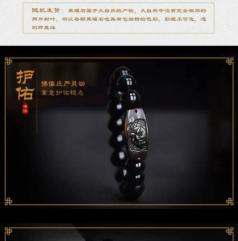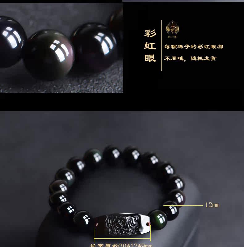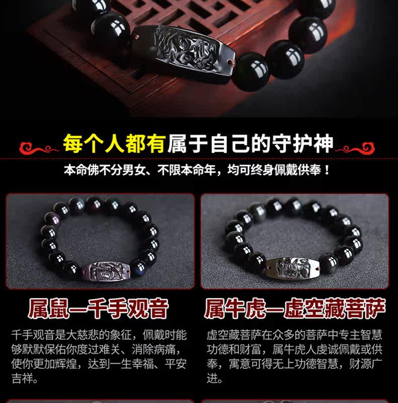 开光天然彩虹眼黑曜石不动尊菩萨手链 生肖鸡男女本命佛不动明王