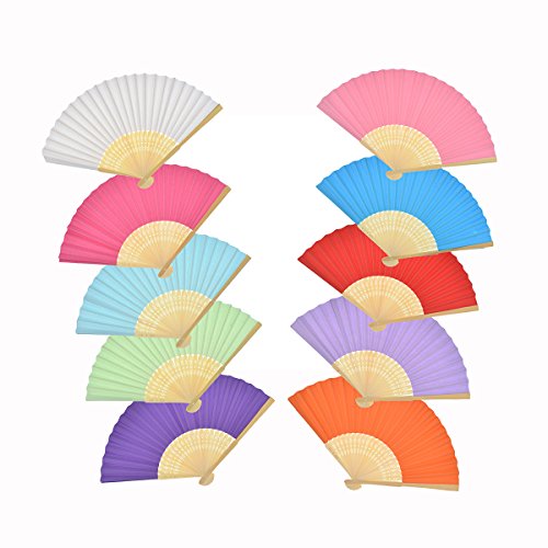 10 Packs Multicolor Bamboo Folding Fan Hadheld Fans Paper Folded Fan for Wedding Party Decoration