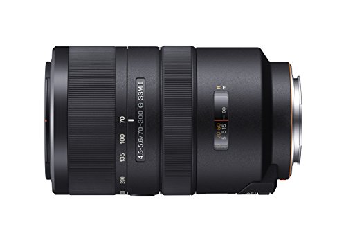-. Binding : Electronics -. Brand : Sony -. Color : Black -. EAN : 0027242888746 -. Feature : 70-300mm F4.5-5.6 G SSM II Fixed Zoom Lens for Sony Alpha Cameras / New Nano AR Coating with nano-precision structure / High-performance AF with enhanced object-tracking / 105-450mm (35mm equivalent) w. APS-C format cameras / Two Extra-Low Dispersion (ED) glass elements / 0.25x maximum magnification / Smooth manual focusing with easy-grip ring / Internal focus design for fast response / Circular aperture for smooth defocus effects / Supplied carrying case and petal shaped lens hood -. IsEligibleForTradeIn : 1 -. Label : Sony -. Manufacturer : Sony -. Model : SAL70300G2 -. MPN : SAL70300G2 -. PackageQuantity : 1 -. PartNumber : SAL70300G2 -. ProductGroup : Photography -. ProductTypeName : CAMERA_LENSES -. Publisher : Sony -. ReleaseDate : 2015-02-24 -. Studio : Sony -. Title : Sony DSLR Lens 70-300mm F4.5-5.6 G SSM II Fixed Zoom Lens for Sony Alpha Cameras -. UPC : 027242888746