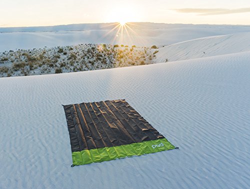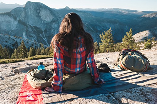 ULTRA-COMPACT pocket blanket fits into a 2.5x4.5 inch pouch, and folds out into a large 63x44 inch tarp.