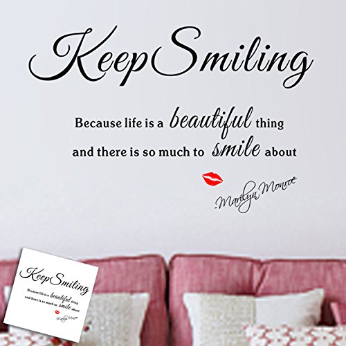 -. Feature : Material: Vinyl. Quantity: 2pcs , keep smiling + smiling face, / Use: bedroom stickers, living room sofa background stickers, TV background stickers. / Instructions:Stickers back have adhesive tape, can be directly on the wall. / Features: Removable, leaving no trace.Waterproof, durable. / 100% Lifetime Money Back Guarantee. so if you and your best friend aren't happy we will give you a full refund.