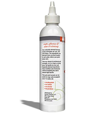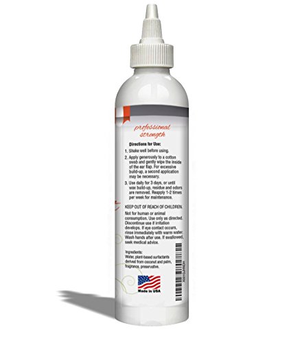 REMOVES DIRT AND EAR WAX - Did you know that your dog's ears help maintain normal body temperature by radiating excess body heat? Cleaning and maintaining your dog's ears removes dirt, yeast, and ear wax buildup and acts as an odor eliminator. This dog ear infection treatment is professional strength to deodorize, flush dirt and clean effectively while being gentle on your pet.