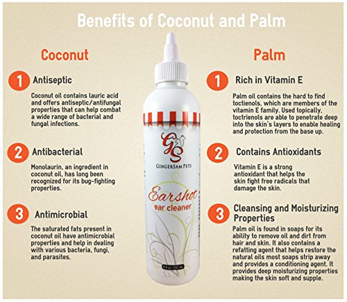 GingerSam Pets Earshot Ear Cleaner is a safe and effective way to maintain your dog's ears. Each ingredient in this ear cleaner is derived from all natural ingredients without the harsh chemicals currently found in other products. It is designed to remove dirt and ear wax, deodorize, and eliminate itching without irritating your dog's ears, It moisturizes without depleting the skins natural lipids. The surfactants are derived from renewable resources which makes it more eco friendly. It is sulfate-free, phosphate-free, alcohol-free, and paraben-free. It will also clean your cat's ears!