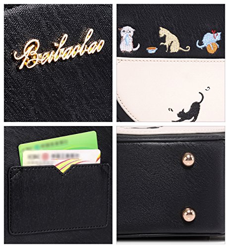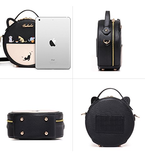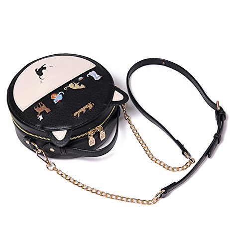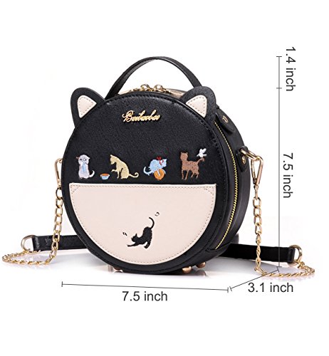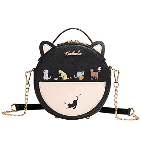 Tom Clovers Womens Girls Embroidered Cats Round Crossbody Bag Sling Bag Handbag Purse Satchel Shoulder Bag Shopping School Travel