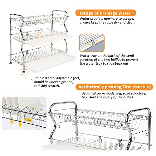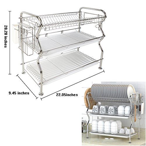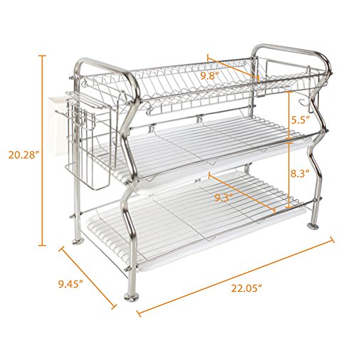 NEX HT-KC815S-M 3-Tier Dish Drainer Rack, Stainless Steel