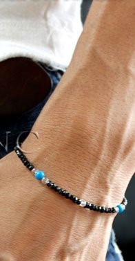 블랙《스피네루》 중에(속에),천연 수정과《다코이즈》를 사이에 두어,알맞게 캐주얼 다운.어떤 코데로도 맞추기 쉬운 팔찌에 마무리했습니다