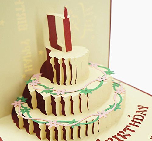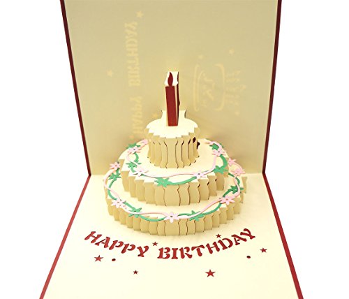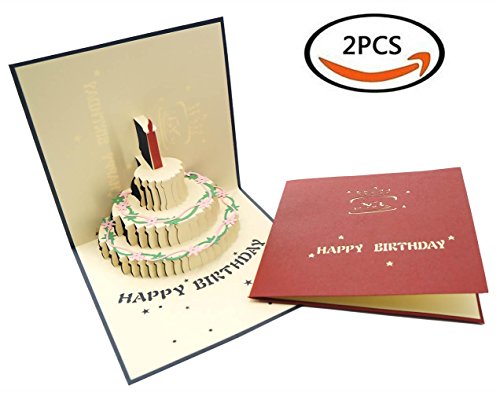 2PCS Premium Papercraft 3D Pop Up Birthday Cards, Customized Greeting Words, Creative Gift Greeting Cards with Birthday Cake