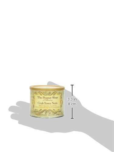 -. Binding : Grocery -. Brand : The Peanut Shop of Williamsburg -. EAN : 0053136898966 -. Feature : Distinctively unique and different And unbelievably crisp / Our same Super Extra Large Handcooked Virginia Peanuts are lightly seasoned in a variety of flavors / Try a tin for yourself and give several as gifts to those you wish to receive the finest -. Label : The Peanut Shop of Williamsburg -. Manufacturer : The Peanut Shop of Williamsburg -. Model : 89896 -. MPN : 89896 -. NumberOfItems : 1 -. PackageQuantity : 1 -. PartNumber : 89896 -. ProductGroup : Grocery -. ProductTypeName : GROCERY -. PublicationDate : 2012-04-26 -. Publisher : The Peanut Shop of Williamsburg -. Size : 10.5 Ounces -. Studio : The Peanut Shop of Williamsburg -. Title : The Peanut Shop of Williamsburg Crab Town Nuts, 10.5-Ounce Tin -. UPC : 053136898966