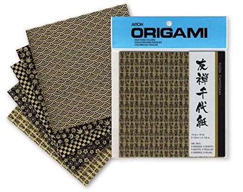 -. Title : Origami Paper Yuzen Black & Gold 6X6 5 Sheets