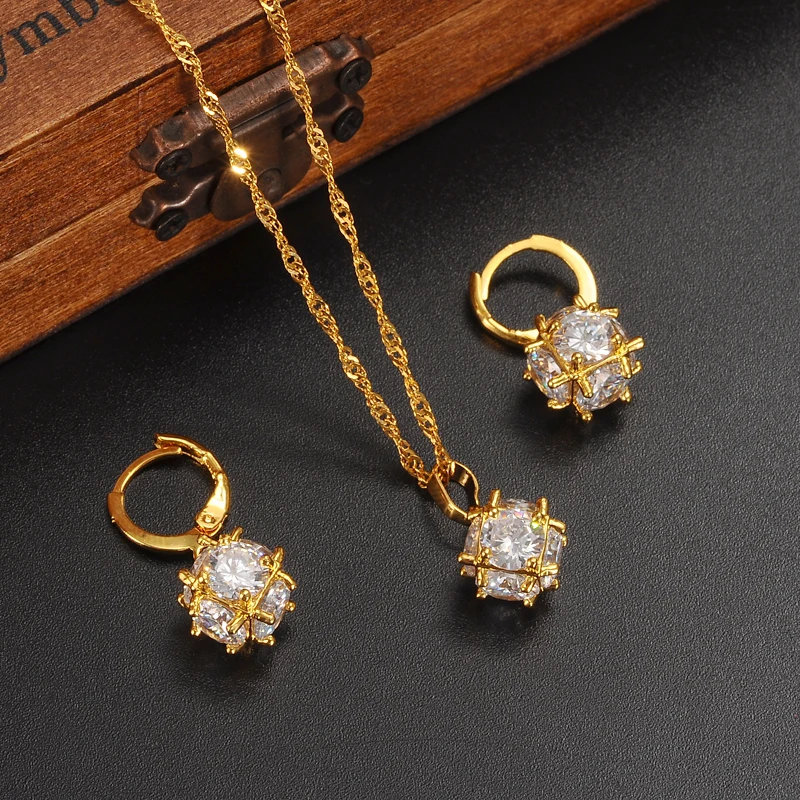 Jewelry Type:Gold Wedding Jewelry Sets Cubic Zirconia Elegant Engagement Earring fo