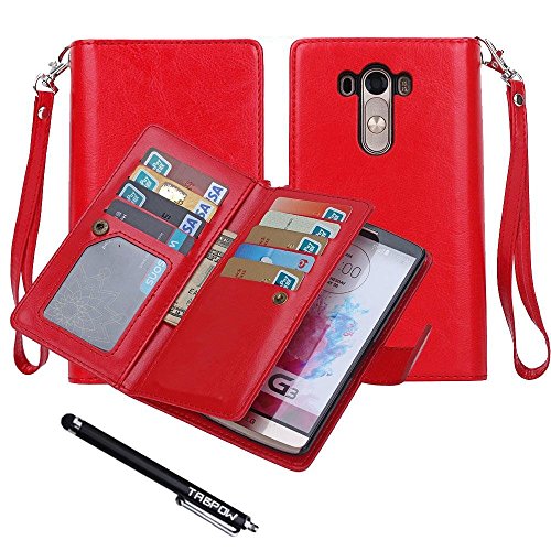 LG G3 Case, LG G3 Wallet Case, TabPow [Wallet Case] 9 Card Holder [Detachable Wallet Folio] PU Leather Flip Case With Lanyard Strap For LG G3