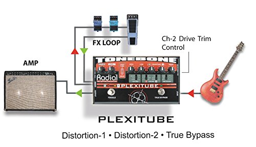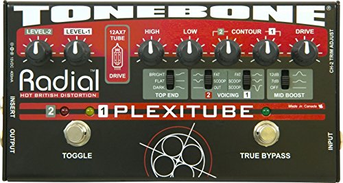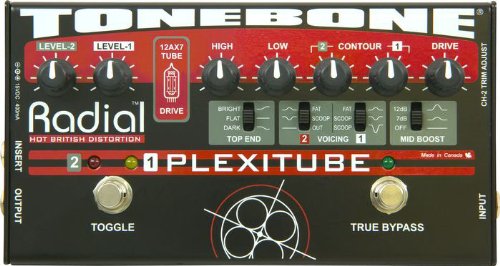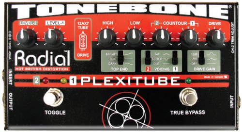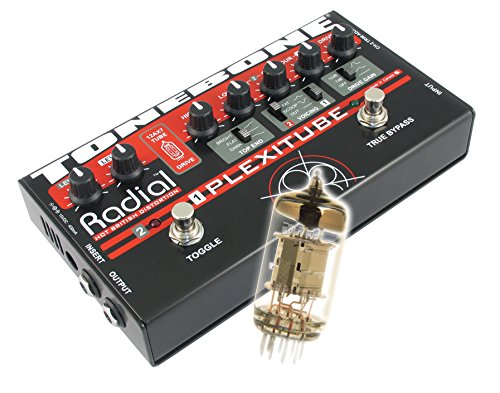 ReleaseDate : 2010-10-03 Studio : Radial Engineering Publisher : Radial Engineering Binding : Electronics Product Description 2-channel tube distortion pedal combines the natural warmth and harmonic generation of a 12AX7 tube with the control and saturation of Radial's unique multi-stage solid-state drive circuit. This combination provides incredible gain with tons of overtones and, when combined with their unique passive-interactive EQ, produces four generations of Marshall Plexi tones worthy of a Shakespearian Ode. Designed to enhance onstage functionality, the Plexitube features two distinct distortion channels for on-the-fly transition between rhythm and lead settings. Channel-1 has been optimized for rhythm with chunk rhythm tones and scooped out mids for a thunderous wall-of-sound and complete world domination. Channel-2 is optimized to produce razor-sharp cut for solos and sustaining mids that are so smooth, they can make a grown man cry. This is augmented with an effects loop that can automatically turn your delay on for leads. No tap dancing!When the Plexitube is off, true-bypass connectivity ensures the natural tone of your guitar goes directly to your amp without obstruction or a tone robbing load.Plexitube Setup:The Plexitube is your 'Plexi-in-a-box'! Just plug the Plexitube output into your amp to open up a world of tube driven British rock tones. The separate trim, drive, contour and EQ controls give you instant command of both rhythm and lead distortion settings as well as a true bypass mode that ensures that nothing gets in the way of your pure guitar-to-amp tone. But that's just the beginning because you've also got a foot-switchable effects loop at your disposal that's there when you need it and out of your clean signal path when you don't. You will be amazed at the breadth and scope of the sounds just waiting to be discovered in this truly versatile pedal! 0
