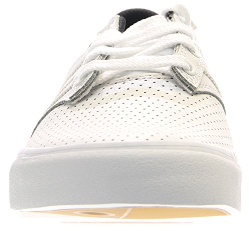 -. Feature : Premium perforated leather upper / Lightly padded heel collar for cushioning and support / Serrated synthetic leather 3-Stripes / Grippy vulcanised outsole for precise board feel