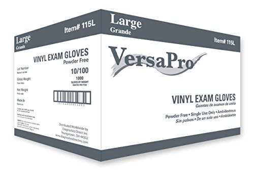 VersaPro 115L1000 Vinyl Exam Gloves, Powder-Free, Large (Pack of 1000)
