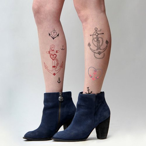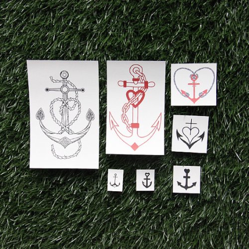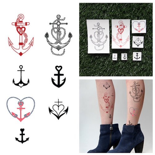 Tattify Heart Anchor Temporary Tattoos - Sea Legs (Set of 12 Tattoos - 2 of each Style) - Individual Styles Available and Fashionable Temporary Tattoos