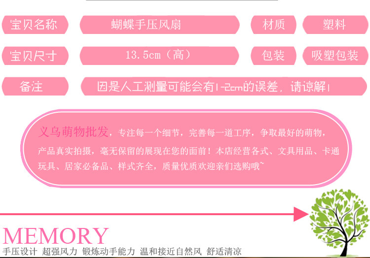 可爱蝴蝶便携式手压小风扇手持手动低碳环保掌上迷你风扇不用电池