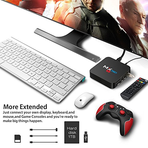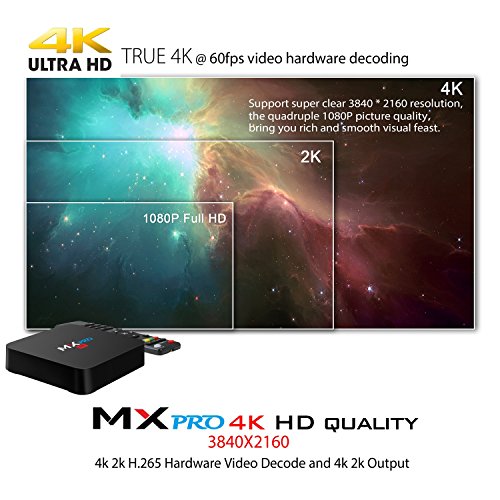 -. Feature : QacQoc MX Pro is a smart Streaming Media Player with Android 5.1 Lollipop OS, powered by Quad core Amlogic S905 Cortex A53, includes a Penta-Core GPU that can reach speeds of up to 2.0GHz / QacQoc MX Pro Support 4K Ultimate HD vedio hardware decoding. With preinstalled Google Play Store and other apps, you can enjoy smooth multi-tasking, game playing or movie viewing. / QacQoc MX Pro Pre-installed Apps ES File Explorer, Google Search, Google Maps, Browser, Gallery, Clock, Play Store , Calculator, Calendar, Video, Email, Gmail / QacQoc MX Pro 64 Bit:Amligic S905 solution, the MOST professtional Quad core CPU performance for Network TV Box. Full Quad core,2GHz Ultra high frequency,more than 4 times performance improvements. / QacQoc MX Pro Bandwidth saving Lifting speed:H.264 hardware decoding can save 50% bandwith resources,let you watch the 4K movie smoothly.4K 1080i/P resolution is 4 times of full HD, so every detail of the screen is lucidity.