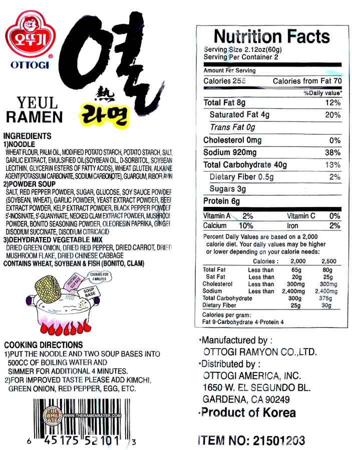 This is one I¨ve seen on spicy lists before but it¨s been a long time since I sampled it. Those two big peppers on the front look foreboding! I¨m sure it was spicy・ but how spicy? I guess we¨ll have to see! Let¨s have a look at Ottogi Yeul Ramen!