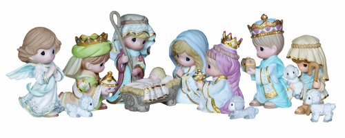 Precious Moments, Christmas Gifts, “Come Let Us Adore Him”, 11 Piece Set, Mini Bisque Porcelain Figurines, #131064
