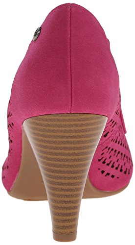 The Bindi is a round toe slip-on featuring a cap toe, stacked heel, and cut out design along the upper.