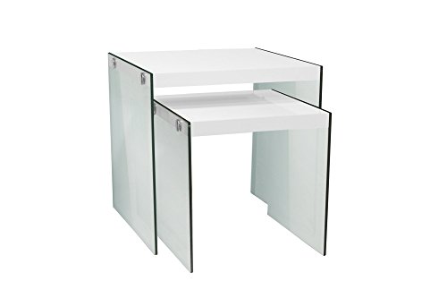 -. Title : L&S Basics 10639 Nesting Table - 2Pcs Set / Glossy White / Tempered Glass