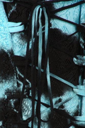 Unique design features rich tie dye colors, lace up corset style bodice and a full double layer handkerchief hem skirt.