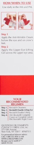 Experience advanced action against the signs of aging. RevitaLift Double Eye Lift is L'Oreal's first double-action eye treatment that combines two exclusive, complementary formulas, fortified Pro-Retinol A to minimize under-eye wrinkles and puffiness, and Pro-Tensium E to instantly firm and lift the upper eye area.Feature