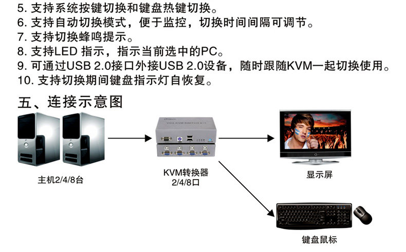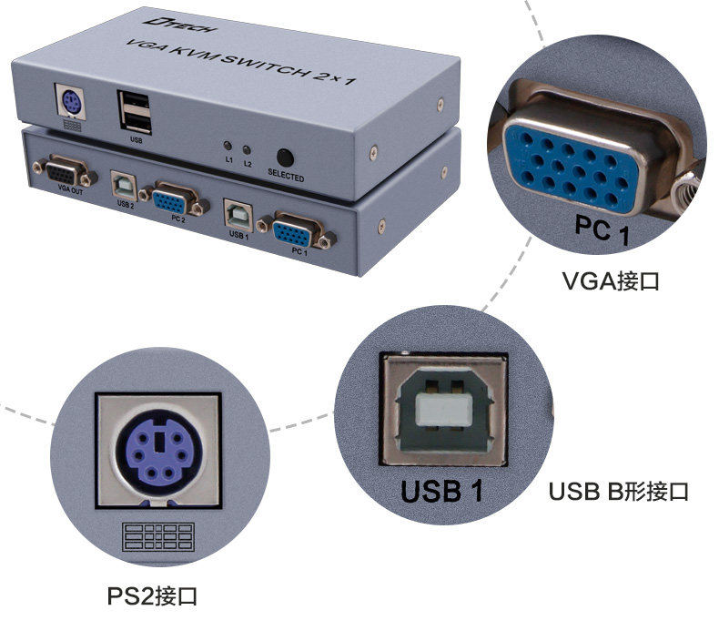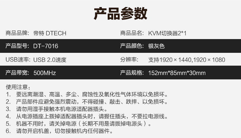 帝特DT-7016 KVM切换器显示器VGA切换器热键切换 KVM切换器2进1出