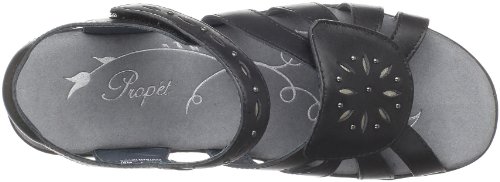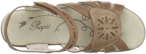 Amazon.com Add a rustic style to your wardrobe with the Propet Tobago sandal. The durable leather upper is strappy, with contrast stitching for a bit of flair. The hook-and-loop ankle strap secures your foot, while the cushioned sole guarantees a comfortable, supportive fit. Pair with a long boho skirt or crisp Bermuda shorts. 0
