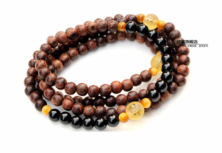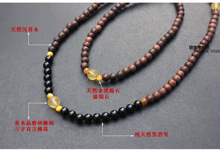 天然水晶黑碧玺天然沉香手串佛珠108颗保真