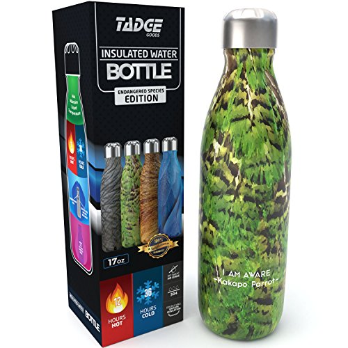 RAISE ENDANGERED SPECIES AWARENESS!! The Tadge Goods double wall vacuum insulated 17 oz stainless steel bottles were designed with a higher purpose in mind. Every bottle purchased will bring more awareness to the growing concern of endangered animals. You can make a difference simply by sporting these beautiful animal skin pattern water bottles and appreciating their natural beauty that may not exist soon without our help.