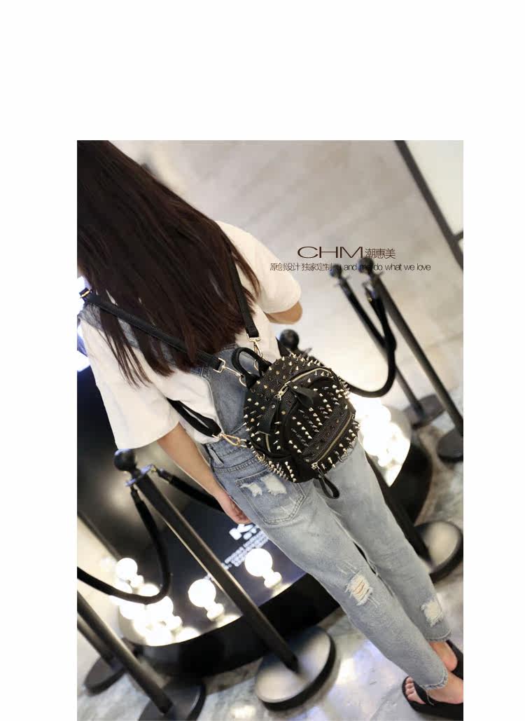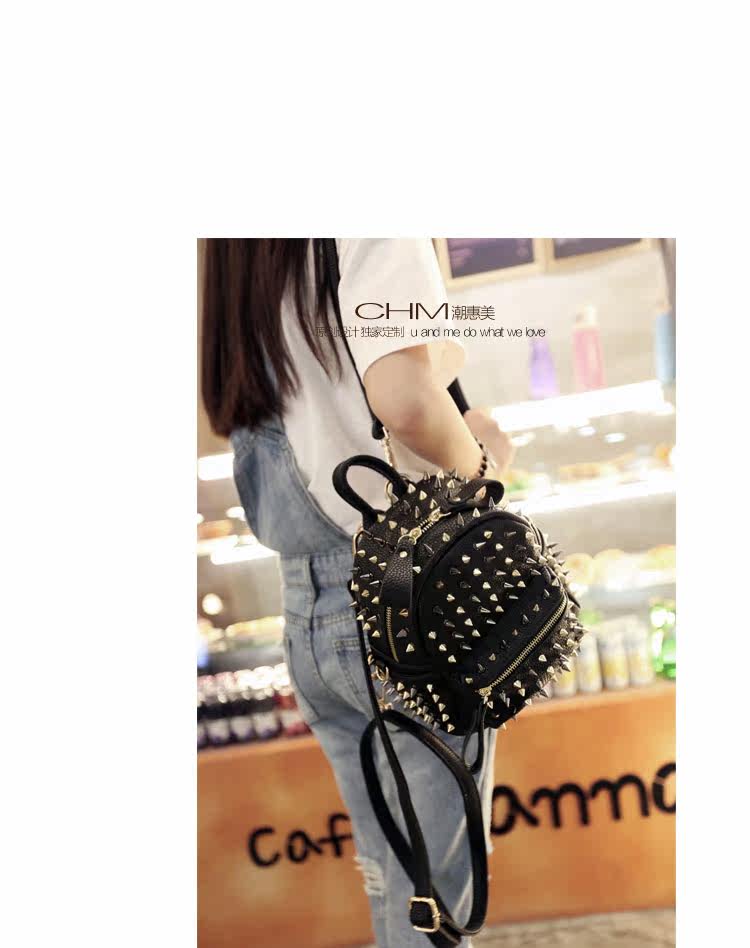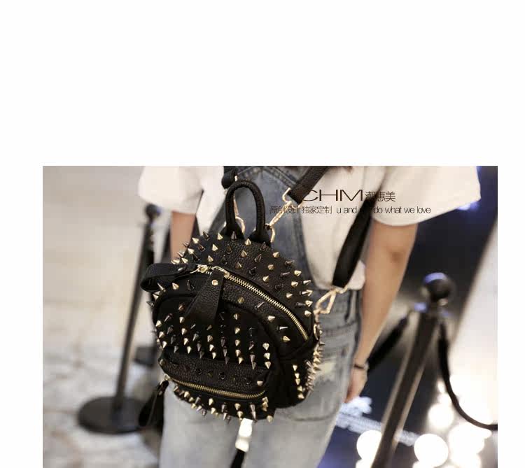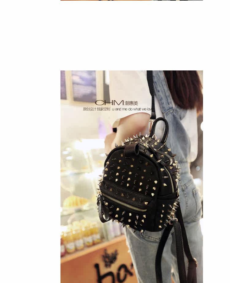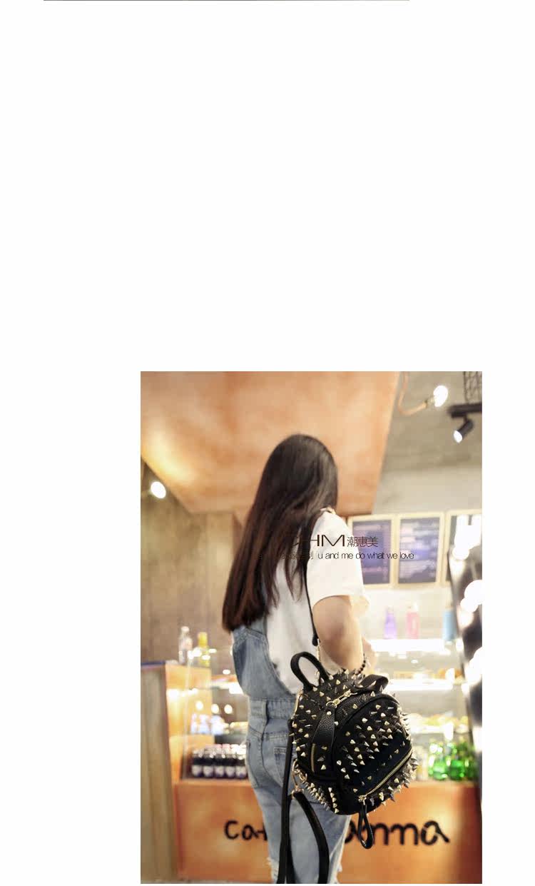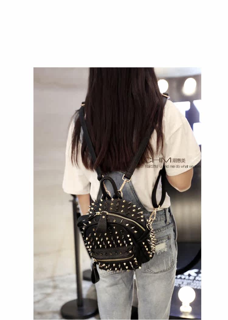 2015新款庞克风个性重金属铆钉欧美双肩包女背包潮 书包出行包