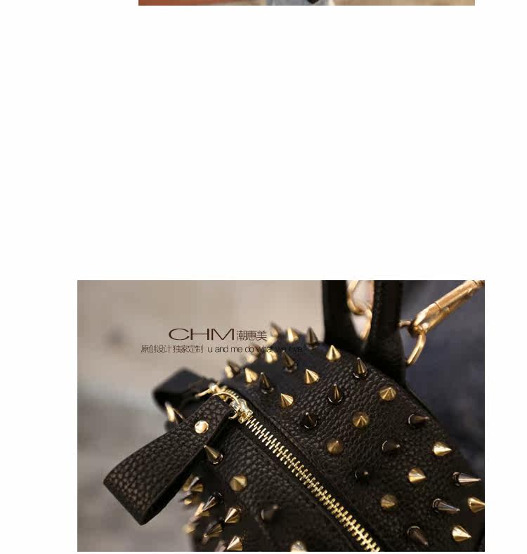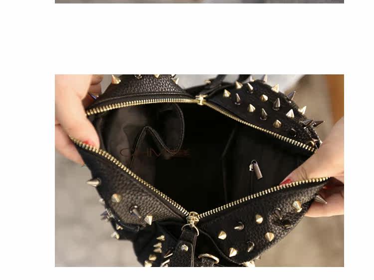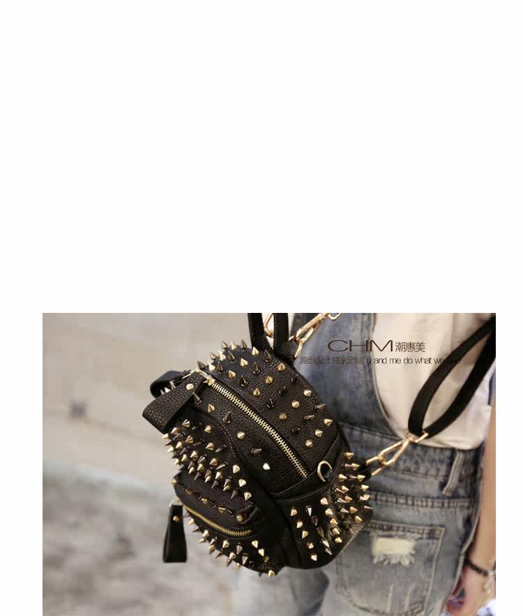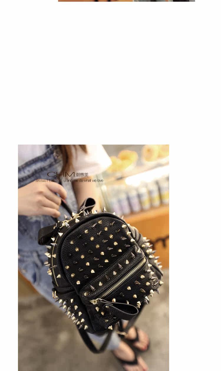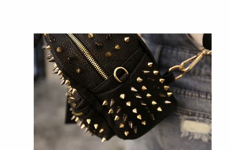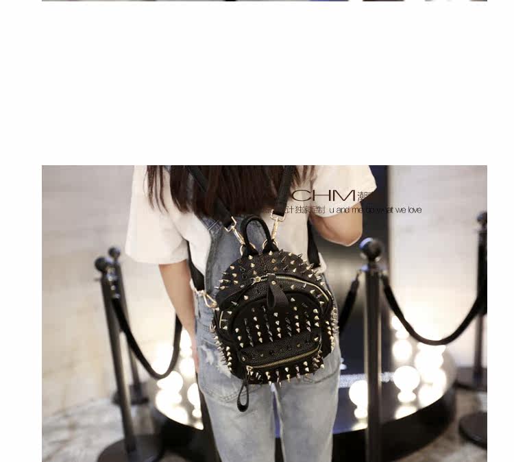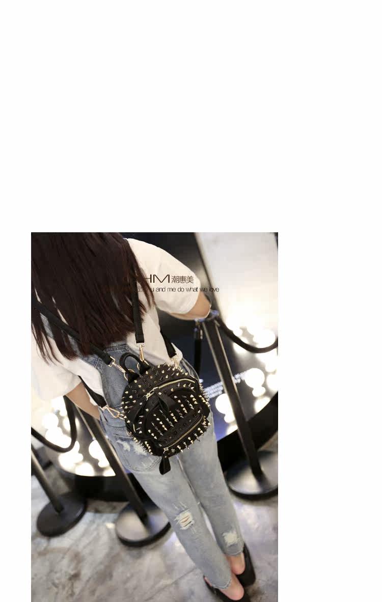2015新款庞克风个性重金属铆钉欧美双肩包女背包潮 书包出行包