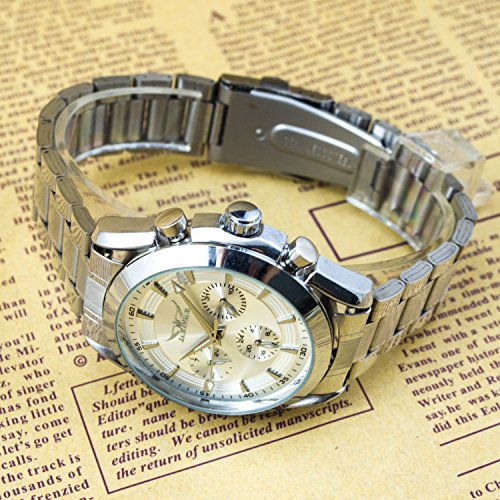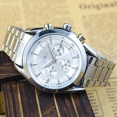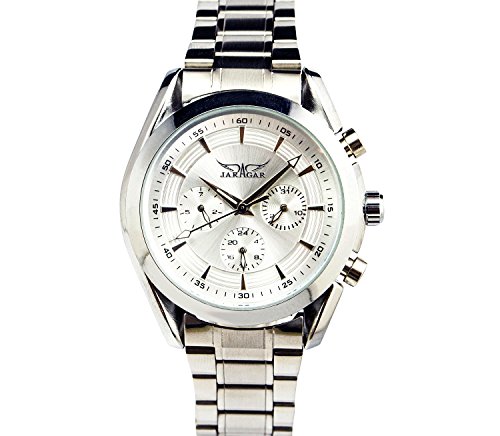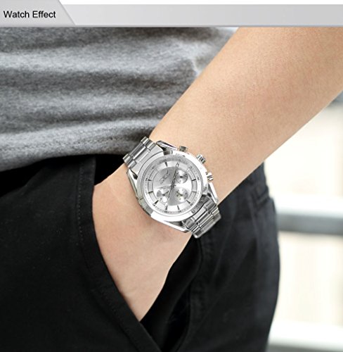 -. Feature : GuTe-picked Classic Elegant Silver Automatic Mechanical Wristwatch for Geltlemen / All Silver Elegant Style Mechanical Wristwatch Automatic / Day,Date,24hrs Sub Dials with Luminous Hands / 3 Buttons on the Right Side Double Button Clasp for Closure / ECO-packaging with GuTe Minimalist Kraft Watchbox