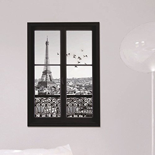 -. Title : Homefind Window 18" x 27" 3D Vintage France Paris Eiffel Tower Removable Vinyl Faux Window Frame Bedroom Living Room Playroom Nursery Glass Wall Stickers Decals