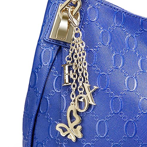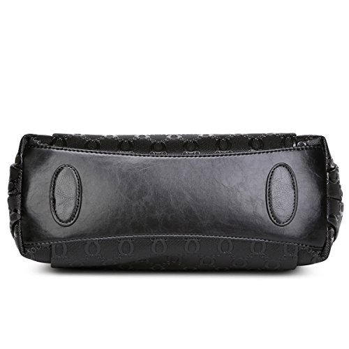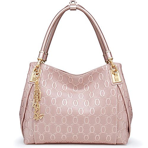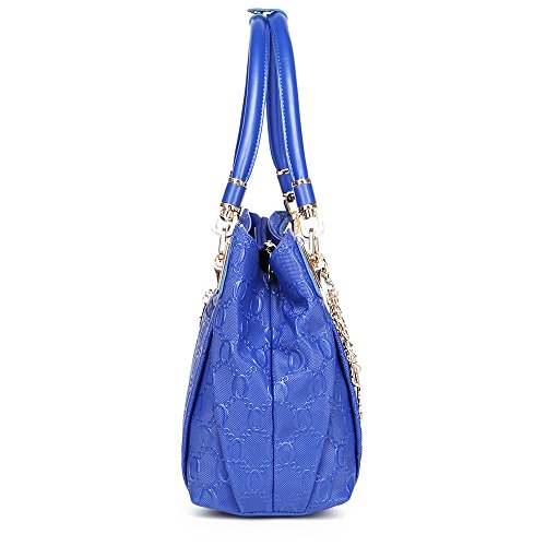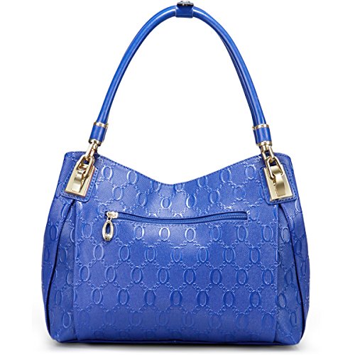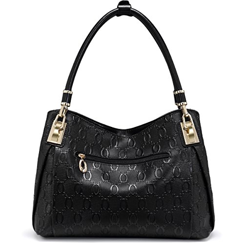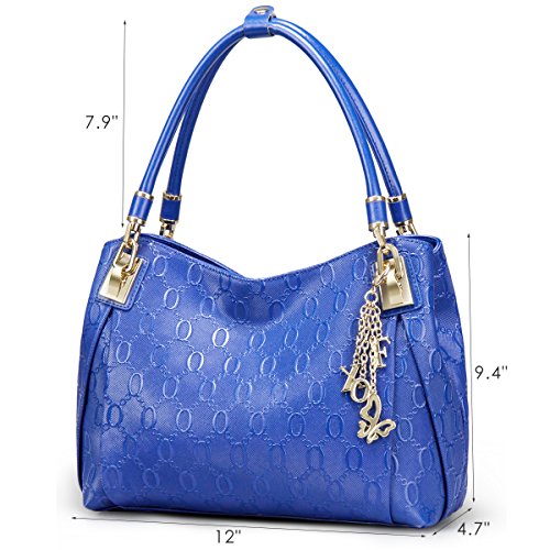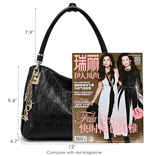 -. Feature : UNIQUE CHAIN EMBOSSING - Our women leather handbag features unique chain pattern embossing, with the decoration of hardware pendant, classic yet fashion. / PREMIUM QUALITY - Made of high quality cow split leather, enhancing softness and comfort. Polyester silk lining and premium hardware can stay in good condition even if used for a long time. / DIMENSIONS - Approx 12" L x 4.7" W x 9.4" H, handle about 7.9" high. Large capacity can easily hold your iPad, cellphone, book, umbrella, makeup and other stuff. / STRUCTURE - Comes with 2 large capacity main compartments, 1 zipper compartment, 1 side zipper pocket, 1 phone pocket and 1 back zipper pocket, meeting your daily needs. / IDEAL FOR ANY OCCASION - Perfect for dating, office, shopping, travel, party, banquet or special events. Also can be an ideal gift for yourself or for that someone special.