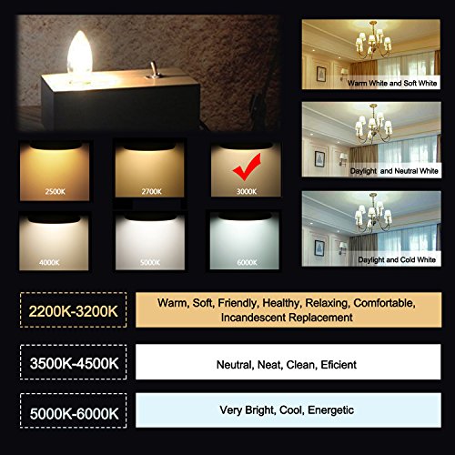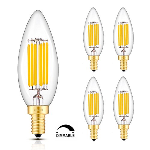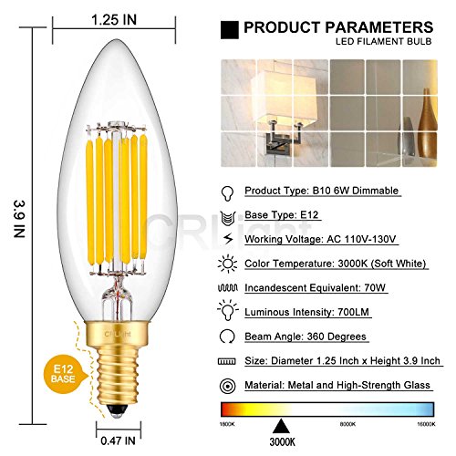 - TECHNICAL FEATURES - Dimmable, LED Filament Candle, E12 Candelabra Base, AC 110V-130V, with Overload Protection,Short Circuit Protection and Over Temperature Protection, The Best Recommended Dimmer is Lutron DVCL-153P-WH Diva