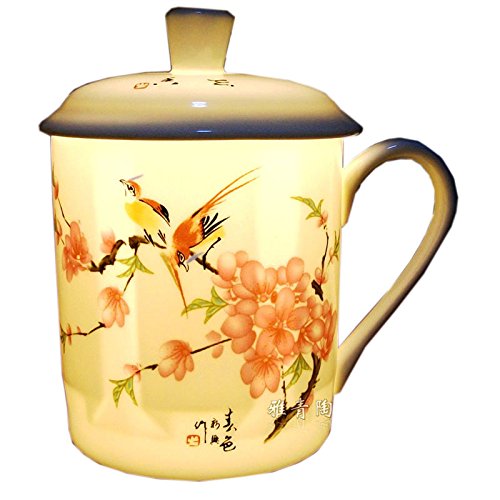 -. Title : ufengke®Jingdezhen Hand Painted Peach Blossom And Bird Bone China Tea Cup With Lid