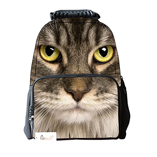 -. Title : Ibeauti Unisex School Backpack, Large Capacity 3D Vivid Animal Face Print Polyester Backpack