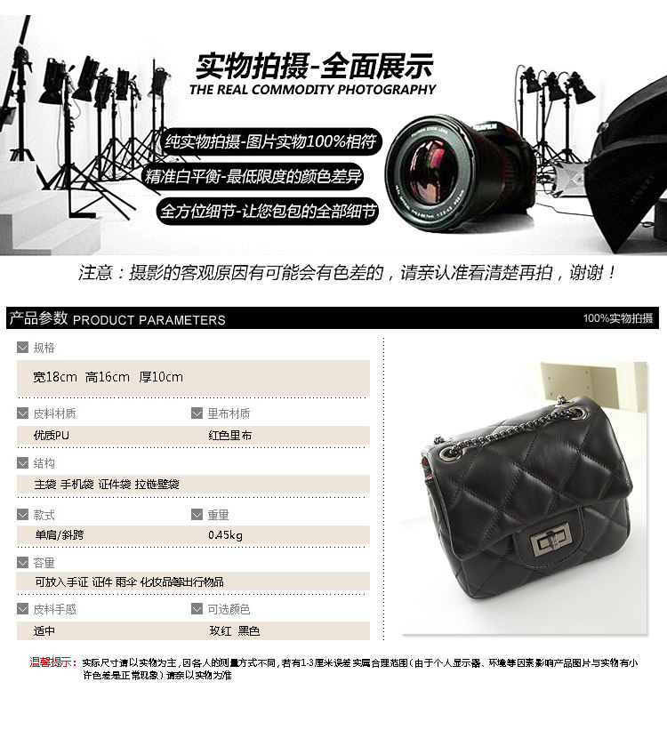 Bag Dimensions: 18cm width of about 16cm high 10cm thick chain length of 1.15 m
