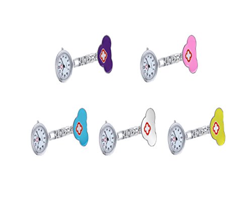 -. Feature : Nurse Watch: Excellent quartz movement ensures the accuracy of the time ideal for infection prevention and control. / Style: Clip on fob watch for nurses and doctors. Fun design brightens up your day with your patients in hospital. / Easy to wear: Simple pin clip design lapel watch. It's convenient to wear. / It contains 5 watches with 5 colors. Respectively is purple, white, pink, blue and yellow. / White dial with hour, minute, and second hand on ornate Arabic numerals. Without box.